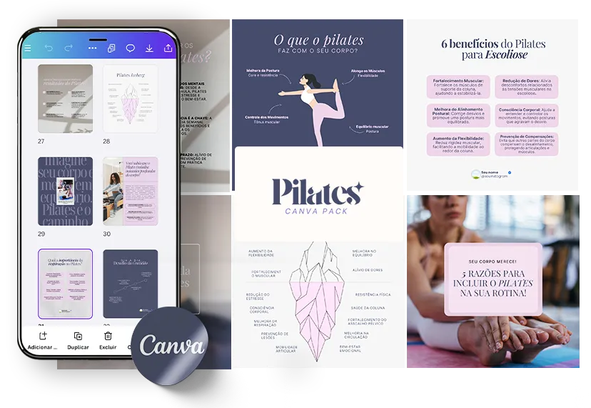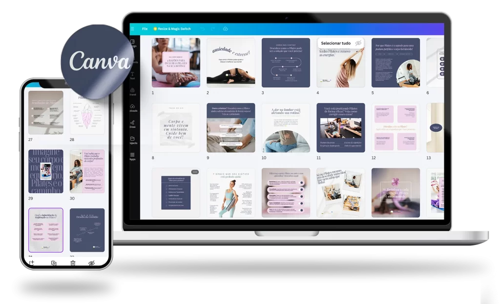 100% personalizáveis no Canva, desenvolvidos para tornar seu uso ainda mais simples e prático.