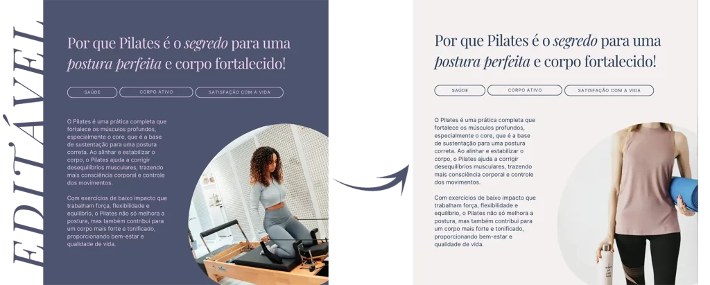 Não! Como são editáveis, você vai adaptar ao seu segmento com o seu conteúdo e também a sua identidade visual. Então, ele terá a cara do seu negócio.